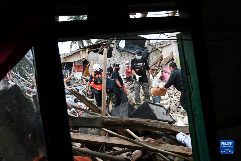 11月23日,人們在印度尼西亞西爪哇省展玉地區地震受損建筑的廢墟中進(jìn)行搜救。