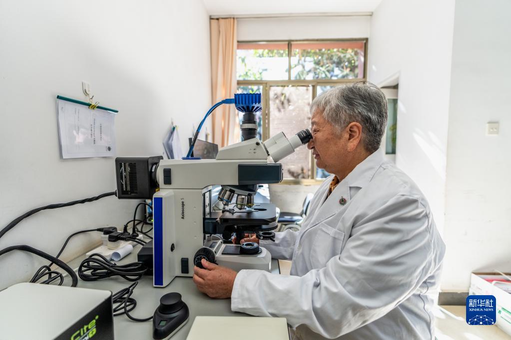 11月22日,朱兆云在云南省藥物研究所實(shí)驗室觀(guān)察藥物顯微組織特征。