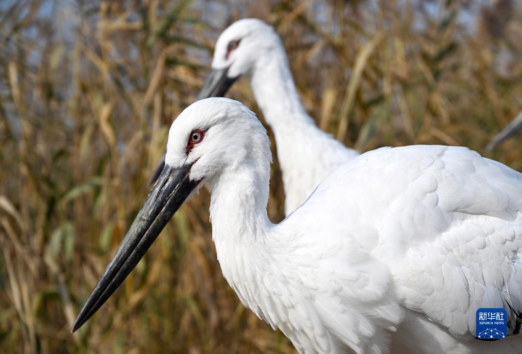 當日,天津市寧河區林業(yè)局將3只具有野外生存能力的東方白鸛在七里海濕地放歸自然。