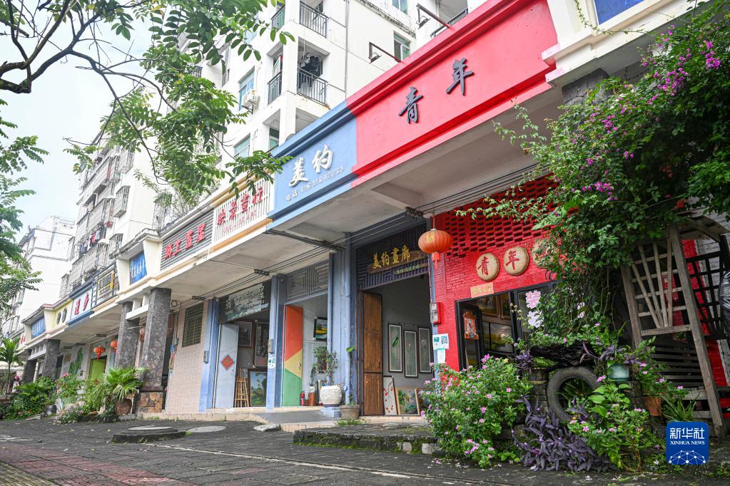 11月23日在海南省屯昌縣油畫(huà)步行街拍攝的眾多畫(huà)廊。