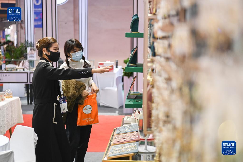 11月24日,客商在參觀(guān)義烏市場(chǎng)建設40周年主題館的一個(gè)飾品展區。