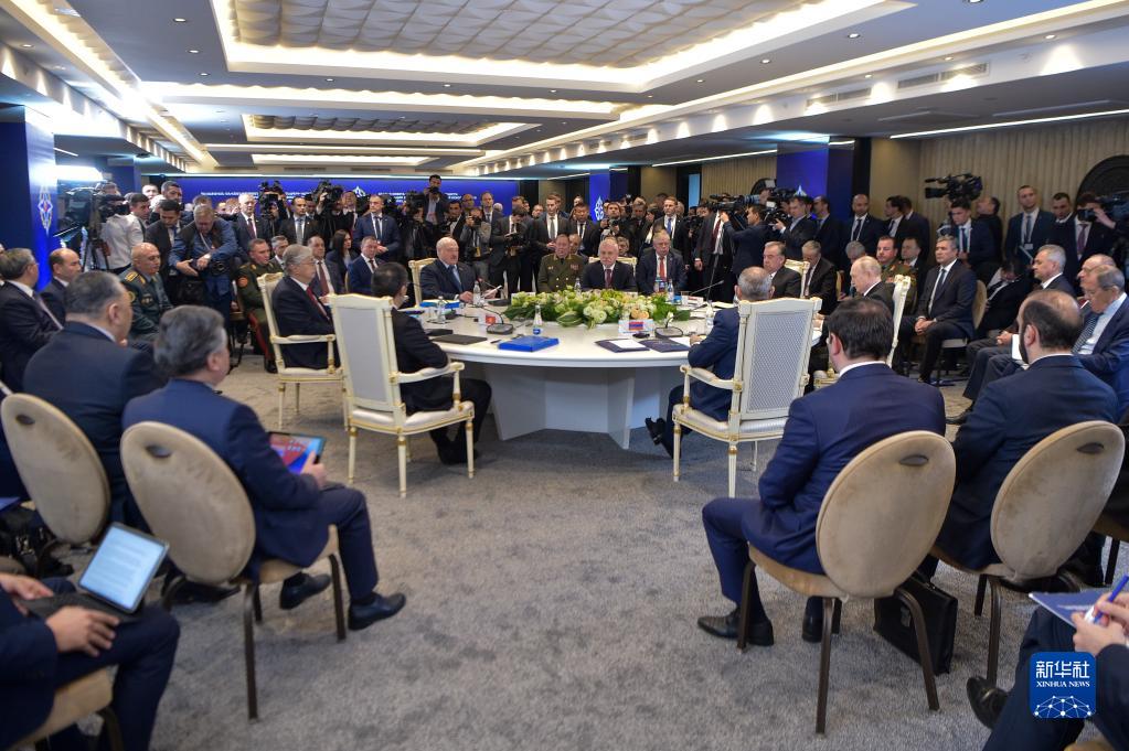 這是11月23日在亞美尼亞首都埃里溫拍攝的集體安全條約組織(集安組織)理事會(huì )會(huì )議現場(chǎng)。
