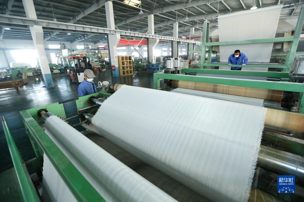 11月24日,青島市即墨區一家篷布生產(chǎn)企業(yè)的工人在涂膜車(chē)間忙碌。