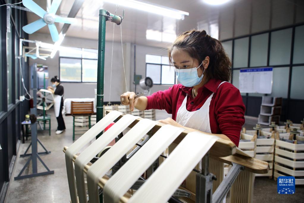 11月23日,工人在重慶市黔江區一家絲綢公司生產(chǎn)車(chē)間內忙碌。