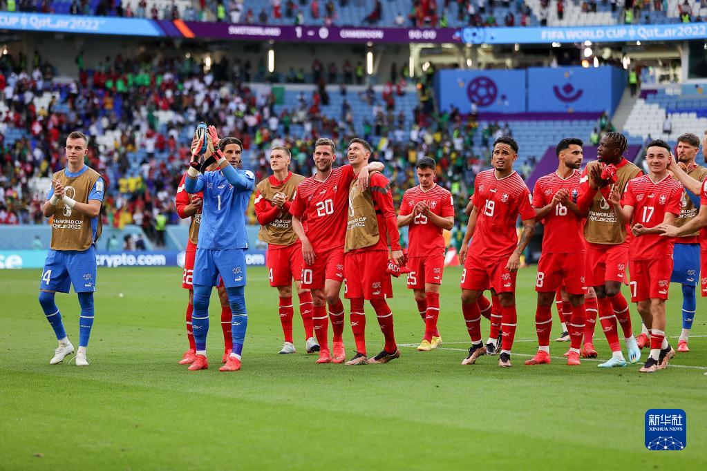 當日,在卡塔爾沃克拉賈努布球場(chǎng)進(jìn)行的2022卡塔爾世界杯足球賽G組比賽中,瑞士隊以1比0戰勝喀麥隆隊。