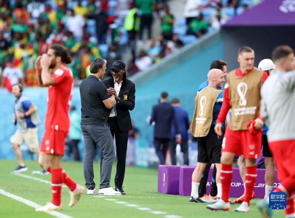 11月24日,喀麥隆隊主教練里格貝特·宋與瑞士隊主教練穆拉特·亞金在賽后相互致意。