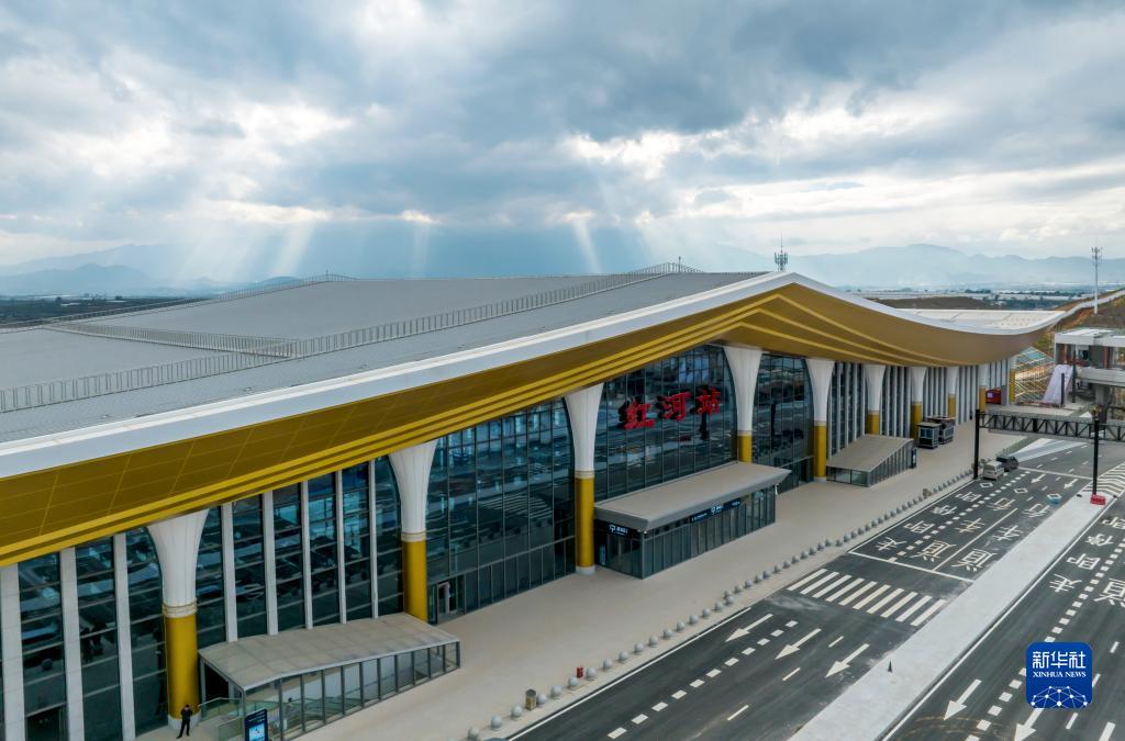 11月24日拍攝的彌蒙高鐵紅河站(無(wú)人機照片)。