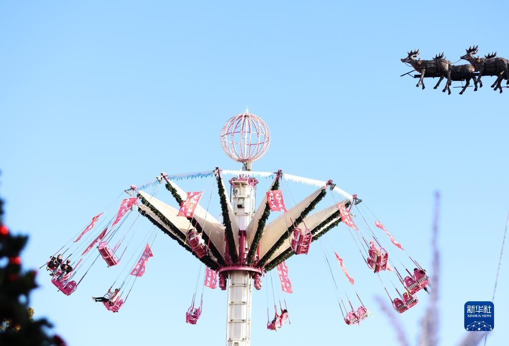 這是11月24日在法國巴黎杜伊勒里花園拍攝的圣誕市場(chǎng)的游樂(lè )設施。