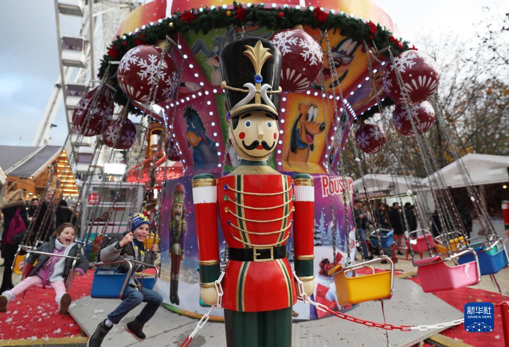 11月24日,孩子們在法國巴黎杜伊勒里花園的圣誕市場(chǎng)嬉戲。