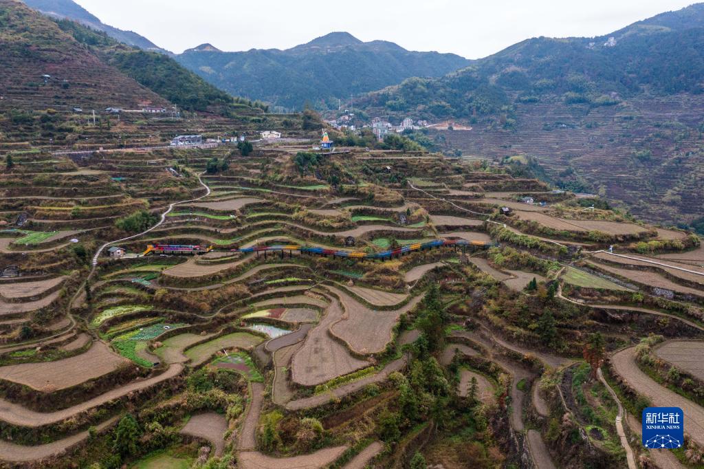 11月24日在浙江省麗水市青田縣小舟山鄉拍攝的高山梯田景觀(guān)帶(無(wú)人機照片)。