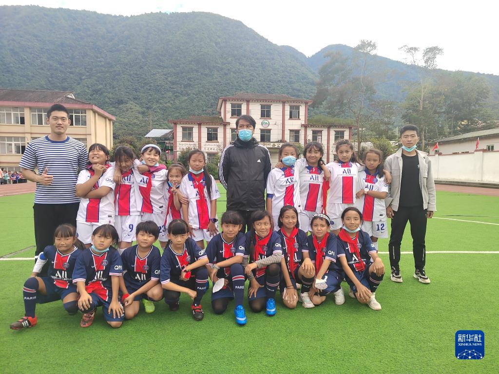 西藏墨脫縣完全小學(xué)陽(yáng)光女子足球隊在一次比賽后合影留念(10月28日攝)。