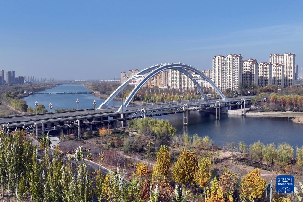 這是11月25日拍攝的邢臺市七里河及周邊景色(無(wú)人機照片)。