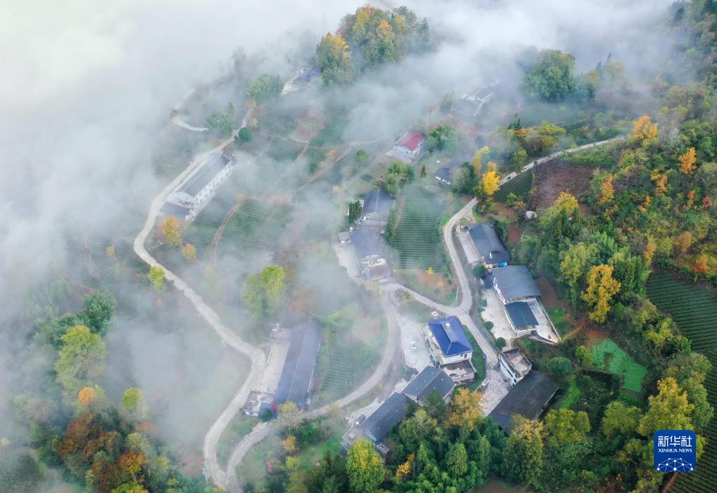 這是11月25日在宣恩縣珠山鎮和平社區拍攝的山間公路景色(無(wú)人機照片)。