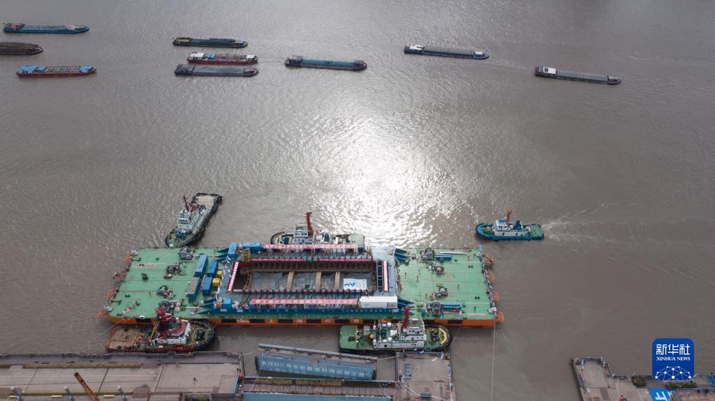 11月25日,“奮力”輪裝載著(zhù)長(cháng)江口二號古船??可虾4瑥S(chǎng)舊址1號船塢碼頭,準備入塢。