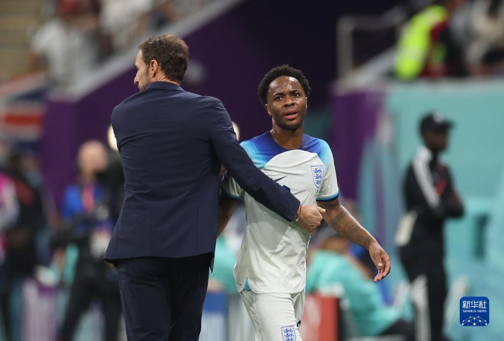 11月25日,英格蘭隊球員斯特林(右)在比賽中被替換下場(chǎng)后。