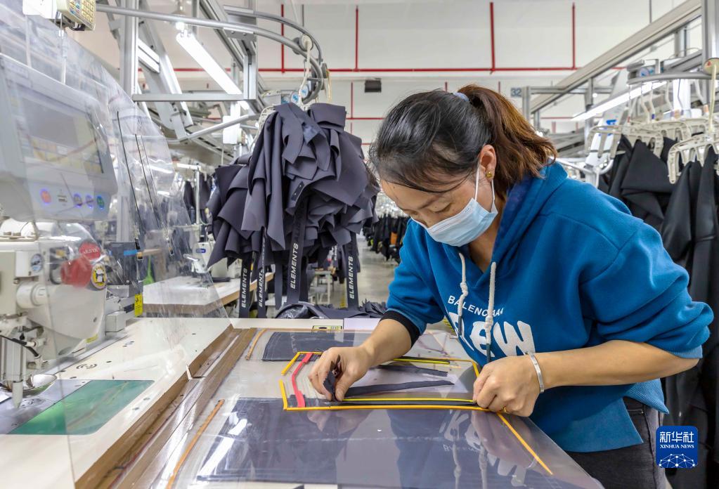 11月25日,員工在貴州省黔西市岔白工業(yè)園區一家服飾公司生產(chǎn)車(chē)間加工服裝。