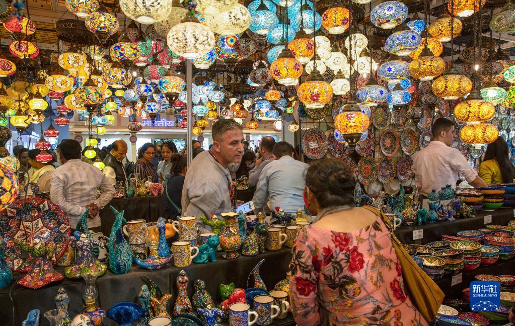 11月22日,人們在印度新德里的2022印度國際貿易展銷(xiāo)會(huì )上購買(mǎi)特色工藝品。