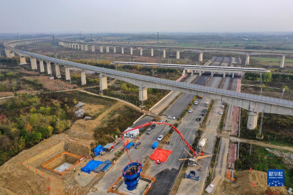 當日,由中鐵四局承建的新建上海至南京至合肥高速鐵路引入合肥樞紐工程,跨合巢蕪高速公路特大橋右線(xiàn)80號墩在合肥市肥東縣順利完成混凝土澆筑,標志著(zhù)新建滬寧合高鐵安徽段首根墩身澆筑完成。