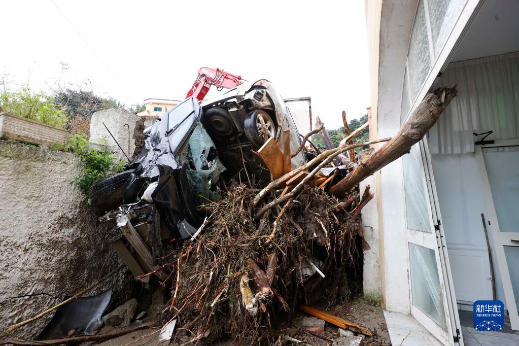 這是11月26日在意大利伊斯基亞島拍攝的受損車(chē)輛。