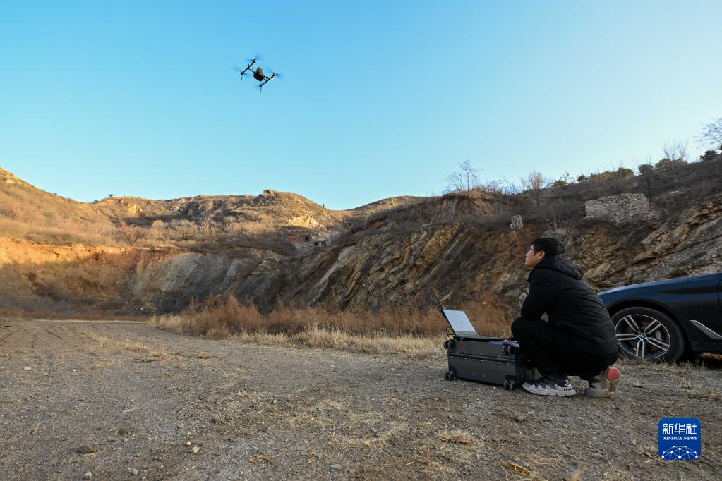 天津華北地質(zhì)勘查局地災防治工作組成員在天津市薊州區利用無(wú)人機對山體進(jìn)行數據建模(11月25日攝)。