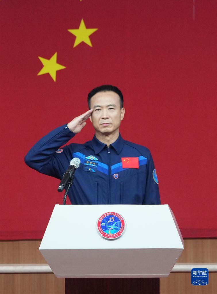 當日,執行神舟十五號載人飛行任務(wù)的航天員乘組費俊龍、鄧清明、張陸在酒泉衛星發(fā)射中心問(wèn)天閣與中外媒體記者集體見(jiàn)面,并回答記者提問(wèn)。