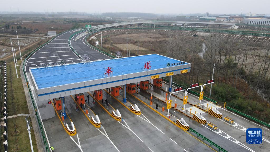 這是安徽路橋集團承建的北沿江高速公路滁州至天長(cháng)段半塔收費站(11月27日攝,無(wú)人機照片)。