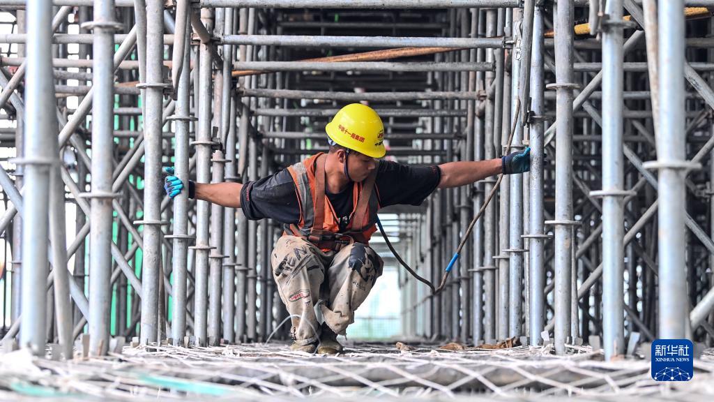 在玉林北站工地,工人在檢查安全防護網(wǎng)(11月27日攝)。