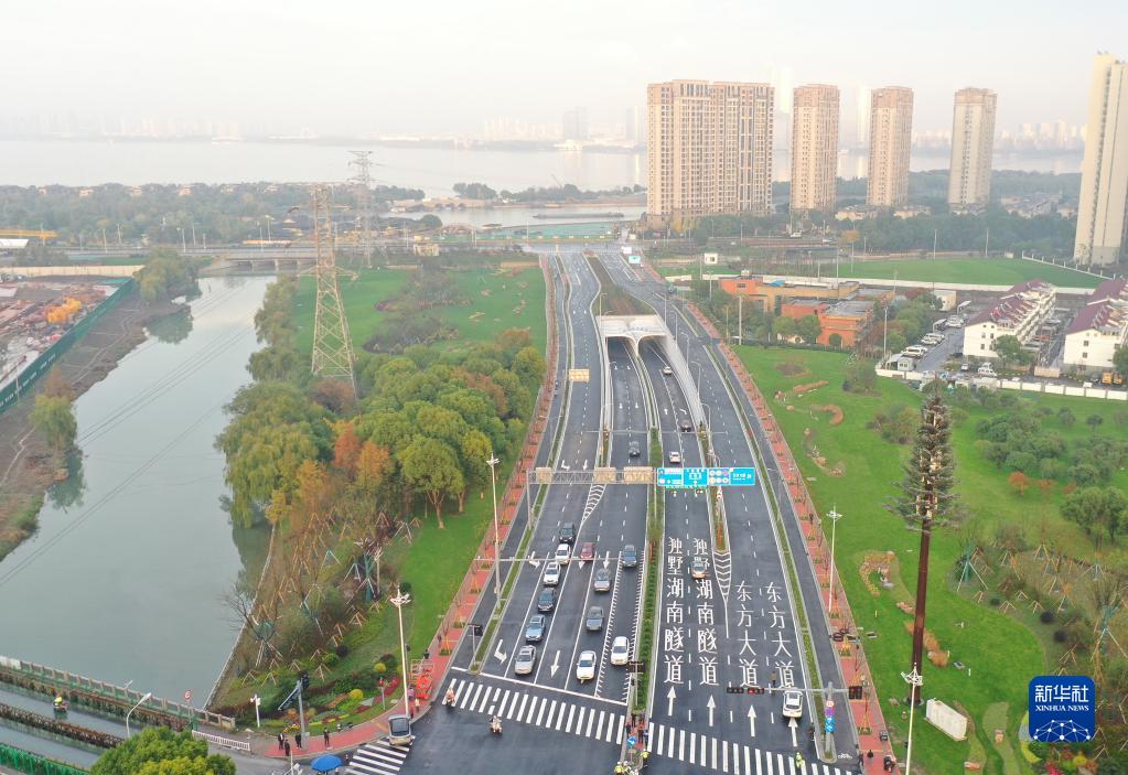 11月28日,車(chē)輛通過(guò)蘇州獨墅湖南隧道。