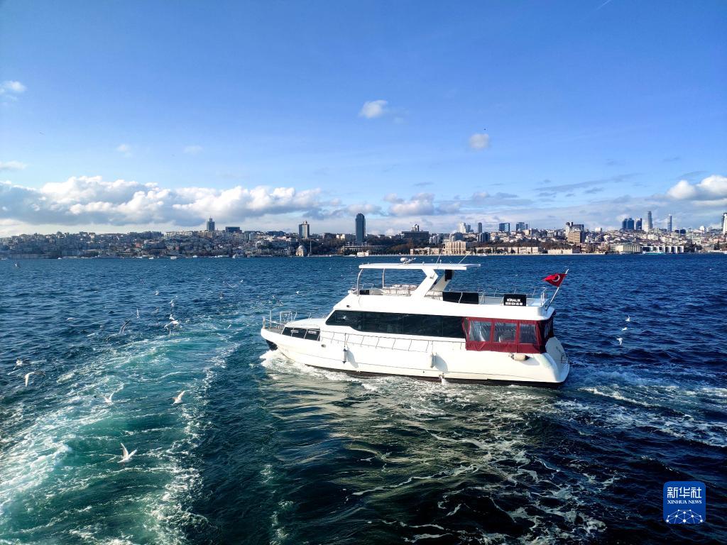 這是11月27日在土耳其伊斯坦布爾拍攝的初冬博斯普魯斯海峽。