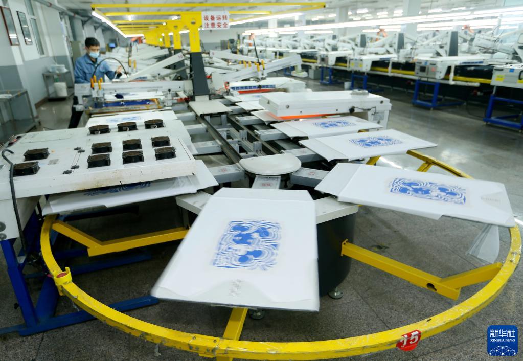 11月29日,山東青島華信印花有限公司的技術(shù)工人在生產(chǎn)出口到海外市場(chǎng)的服裝產(chǎn)品。