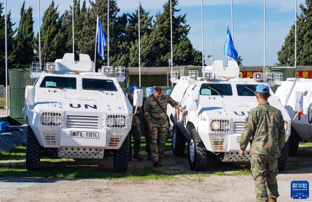 11月28日,核查官員在黎巴嫩南部辛尼亞村的中國維和部隊營(yíng)區檢查車(chē)輛。