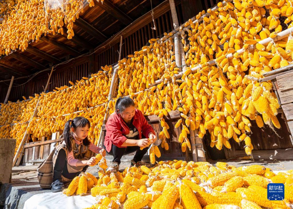 初冬時(shí)節,福建省漳州市南靖縣梅林鎮梅林村迎來(lái)玉米收獲季,村民們趁著(zhù)晴好天氣晾曬玉米。近年來(lái),南靖縣梅林鎮發(fā)揮地理優(yōu)勢,大力推廣玉米種植,以產(chǎn)業(yè)興旺帶動(dòng)鄉村振興。