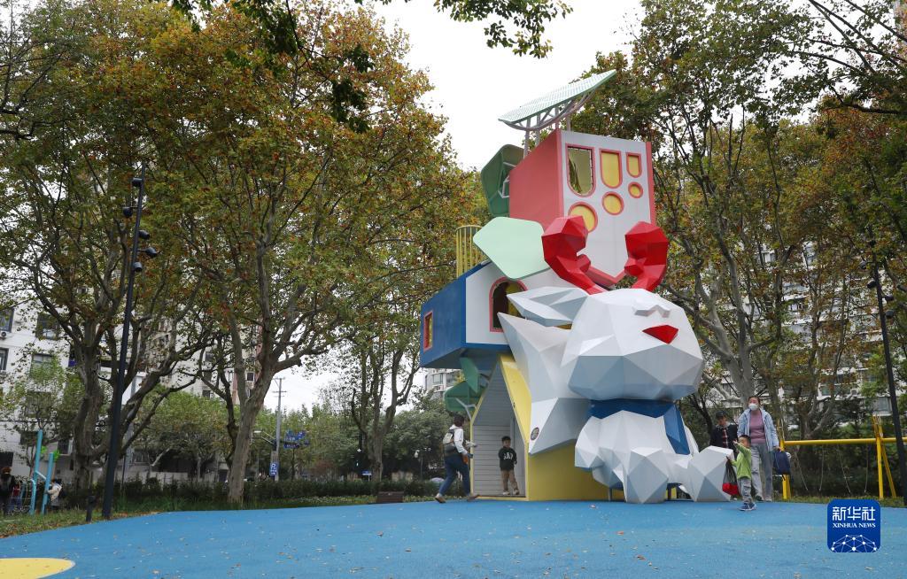 11月18日,孩子們在上海市虹口區和平公園內的兒童游樂(lè )區玩耍。