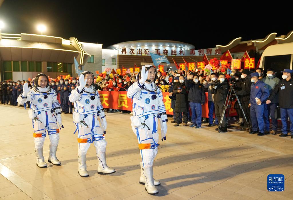 據中國載人航天工程辦公室消息,11月29日20時(shí)18分,神舟十五號載人飛行任務(wù)航天員乘組出征儀式在酒泉衛星發(fā)射中心問(wèn)天閣圓夢(mèng)園廣場(chǎng)舉行。航天員費俊龍(前)、鄧清明(中)、張陸在出征儀式上。