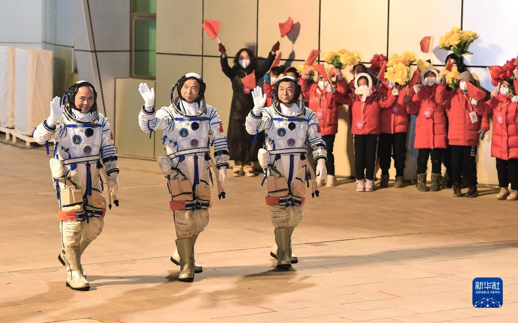 據中國載人航天工程辦公室消息,11月29日20時(shí)18分,神舟十五號載人飛行任務(wù)航天員乘組出征儀式在酒泉衛星發(fā)射中心問(wèn)天閣圓夢(mèng)園廣場(chǎng)舉行。航天員費俊龍(中)、鄧清明(右)、張陸在出征儀式上。