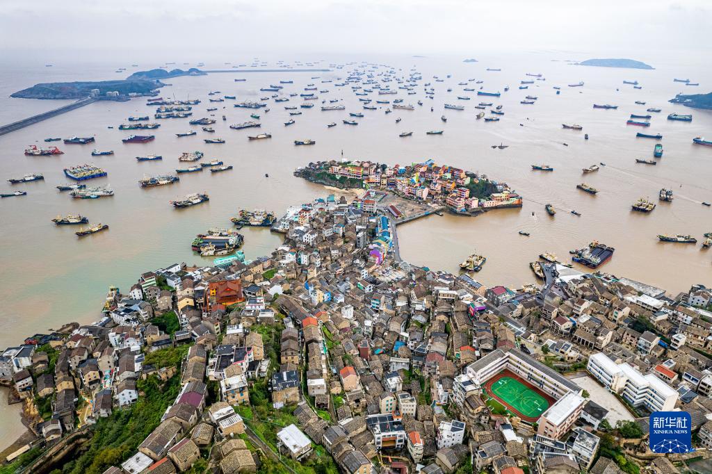 11月29日,在浙江省溫嶺市石塘鎮中心漁港,漁船進(jìn)港避風(fēng)(無(wú)人機照片)。