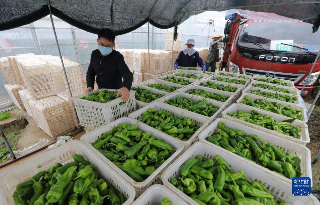 11月29日,在安徽省安慶市宜秀區白澤湖鄉黃石村蔬菜大棚基地,工人們加緊采收辣椒,保證市場(chǎng)供應。