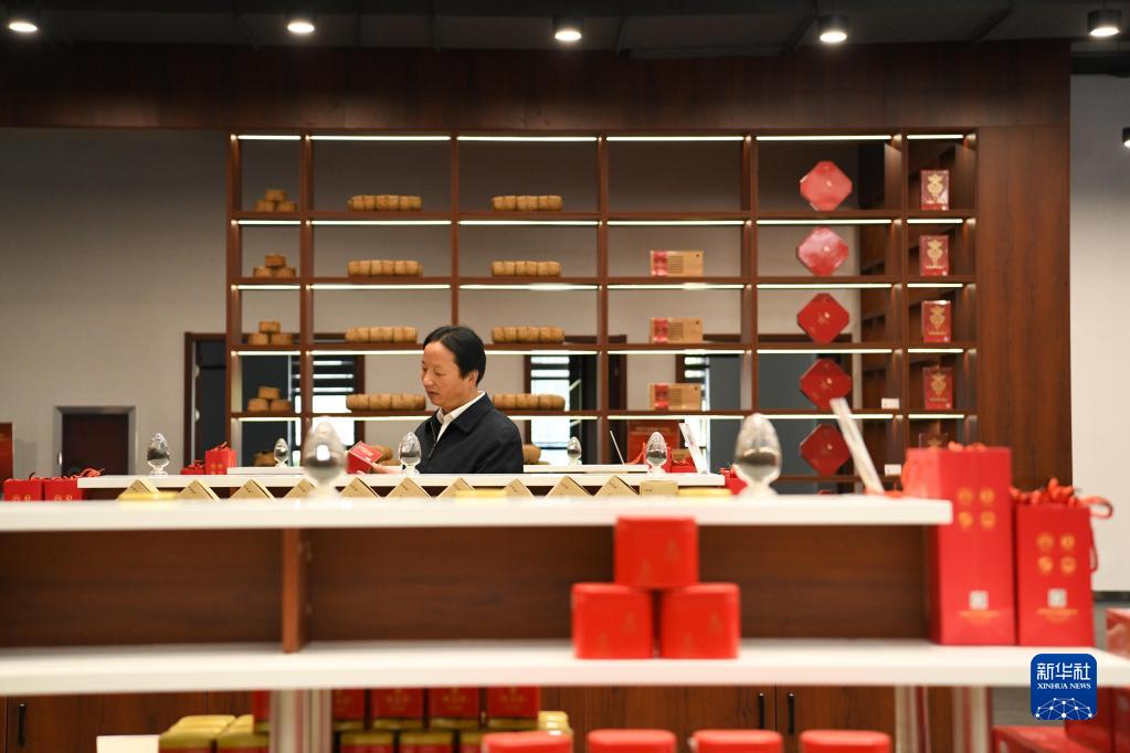 11月26日,安徽祁門(mén)紅茶制作技藝代表性傳承人王昶在祁門(mén)紅茶發(fā)展有限公司內查看祁門(mén)紅茶產(chǎn)品。