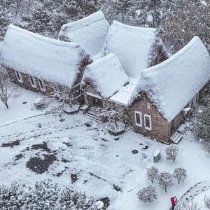 11月30日,在浙江省湖州市長(cháng)興縣和平鎮,大崗山上的茶園被白雪覆蓋(無(wú)人機照片)。