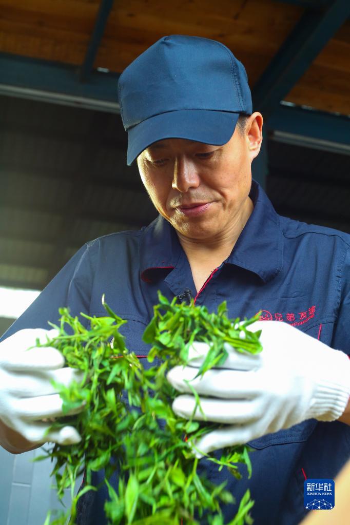 在四川省雅安市友誼茶葉有限公司的生產(chǎn)車(chē)間,甘玉祥在用傳統方式炒茶(2019年7月19日攝)。南路邊茶是黑茶的一種,產(chǎn)于四川省雅安市,又稱(chēng)“邊銷(xiāo)茶”“南邊茶”“藏茶”等。甘玉祥,生于1963年,是國家級非物質(zhì)文化遺產(chǎn)代表性項目——黑茶制作技藝(南路邊茶制作技藝)的代表性傳承人。他從小隨父親學(xué)習制作南路邊茶,希望通過(guò)不懈努力,讓南路邊茶被更多人飲用和喜愛(ài)。