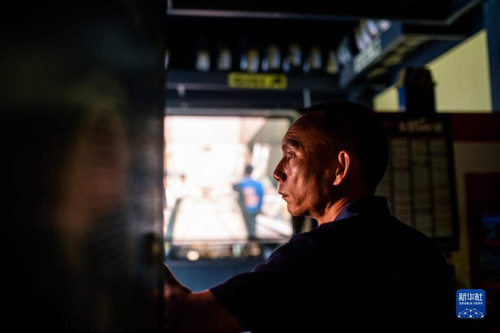 在怒江州瀘水市,楊明金在播放膠片電影(2022年10月31日攝)。