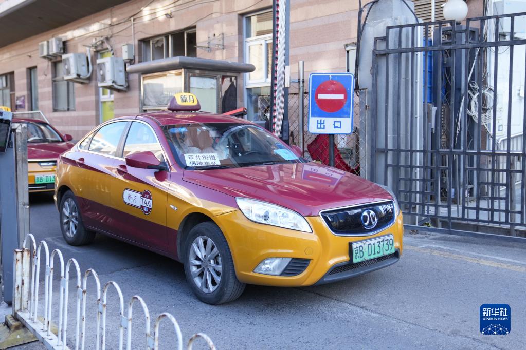 在北京市朝陽(yáng)區雙井街道九龍山社區,駕駛員彭輝駕駛車(chē)輛運送有就醫需要的風(fēng)險區居民前往醫院(11月30日攝)。
