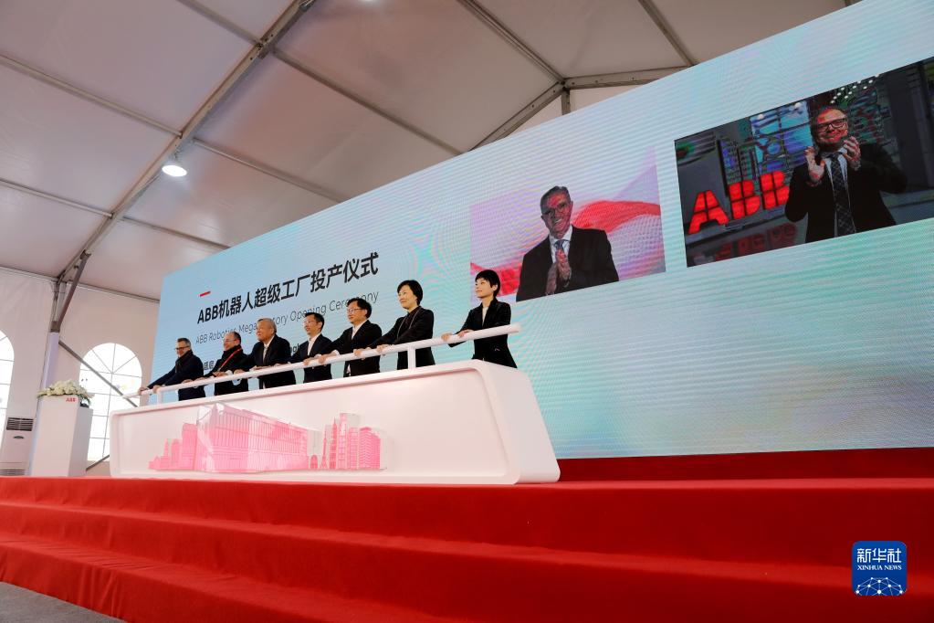 12月2日拍攝的ABB機器人超級工廠(chǎng)投產(chǎn)儀式現場(chǎng)。