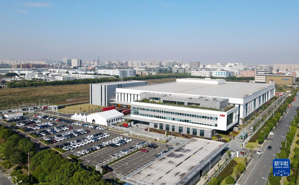 12月2日空中俯瞰位于上海浦東新區的ABB機器人超級工廠(chǎng)(無(wú)人機照片)。