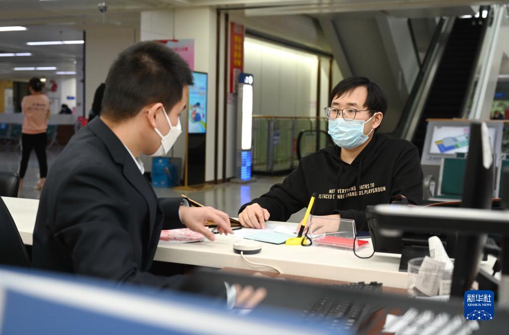 12月1日,工作人員在福州市政務(wù)服務(wù)中心“一件事”綜合窗口為市民(右)辦理子女醫療保險手續及申領(lǐng)醫??ǖ确?wù)。