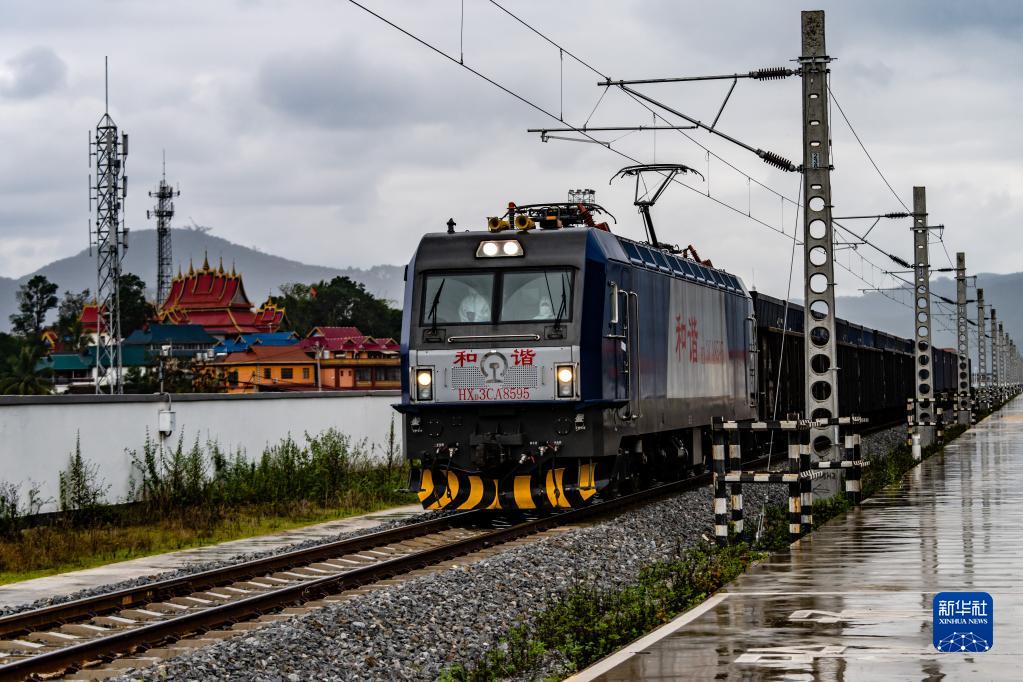 11月24日,貨物列車(chē)即將駛入位于中老邊境的友誼隧道。