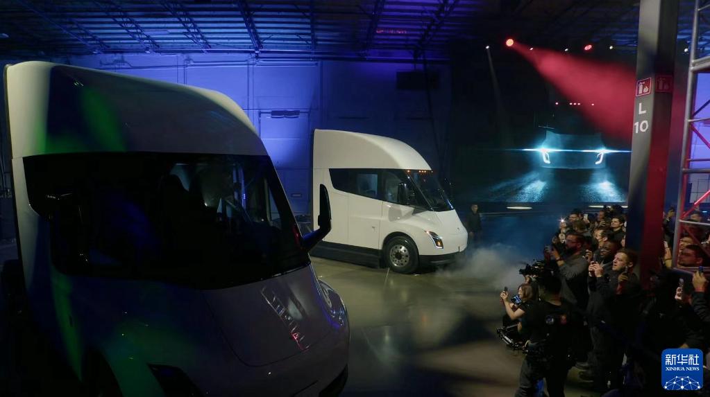 這張視頻截圖顯示的是12月1日,美國特斯拉公司在位于內華達州的超級工廠(chǎng)舉行首批Semi電動(dòng)卡車(chē)交付儀式。