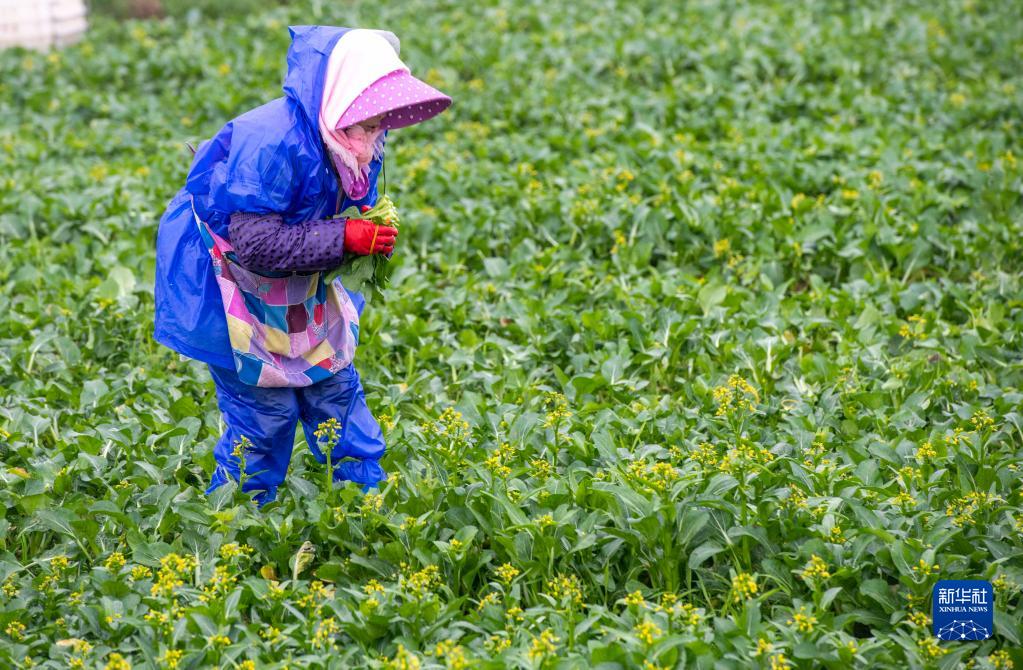 12月4日,在湖南省永州市道縣清塘鎮室家村,村民在蔬菜基地采摘蔬菜。