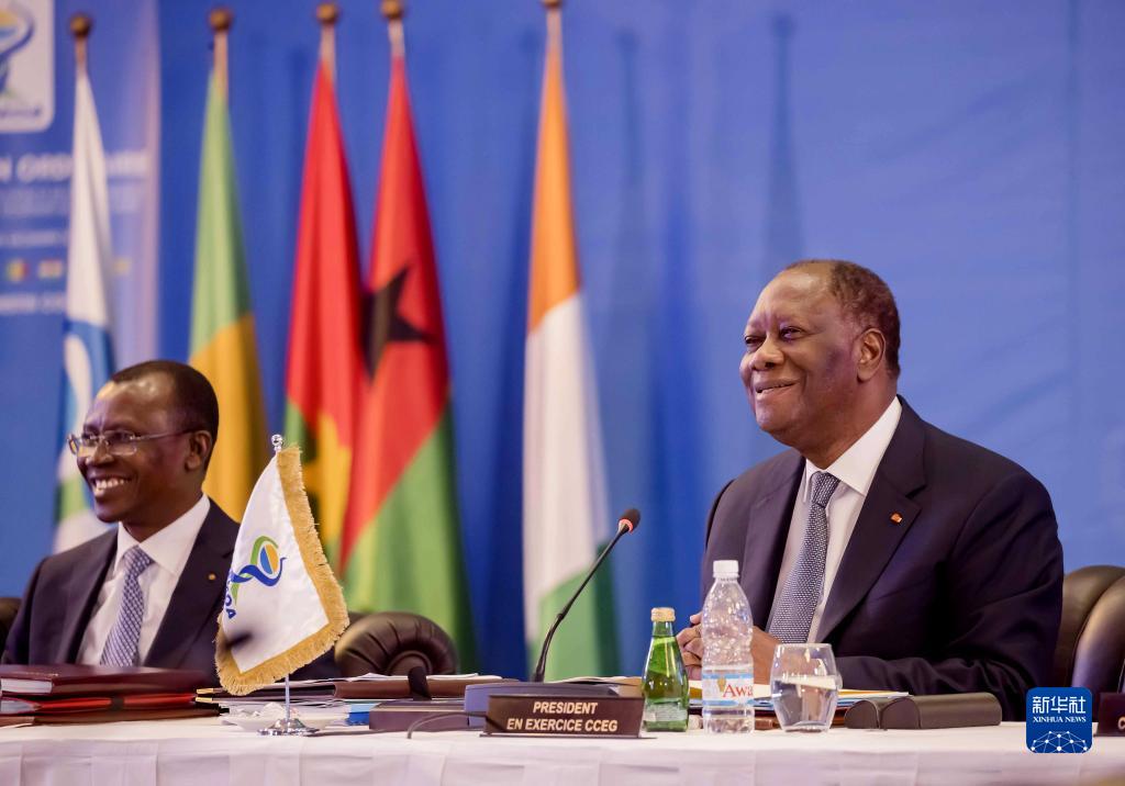 12月5日,在科特迪瓦經(jīng)濟首都阿比讓?zhuān)铺氐贤呖偨y瓦塔拉(右)出席西非經(jīng)濟貨幣聯(lián)盟第23屆國家元首和政府首腦會(huì )議。