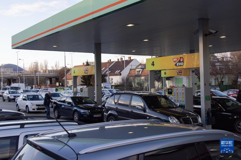 12月6日,匈牙利布達佩斯一處加油站外排起長(cháng)龍。